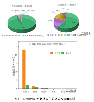 為探尋石墨烯/TiO2功能材料對環(huán)境水體中菌藻群落結(jié)構(gòu)的影響,在戶外設(shè)置了環(huán)境水體培養(yǎng)實(shí)驗(yàn),定量測定了藻類、細(xì)菌的種類和數(shù)量,分析了其群落結(jié)構(gòu)和生物多樣性變化。經(jīng)過28天實(shí)驗(yàn),結(jié)果表明:功能材料對藻類、細(xì)菌數(shù)量均有顯著抑制作用,其中抑藻作用高達(dá)95%,但藻類多樣性表現(xiàn)為增加。采用宏基因組測序法研究了水體中細(xì)菌群落結(jié)構(gòu)的變化,結(jié)果顯示功能材料對水體中細(xì)菌有選擇性抑制效應(yīng),可顯著地改變細(xì)菌的種類組成;細(xì)菌代謝功能基因豐度分析亦支持了石墨烯/TiO2功能材料對細(xì)菌繁殖相關(guān)過程的顯著抑制作用。數(shù)據(jù)結(jié)果綜合證實(shí)了功能材料可通過改變水體浮游生物的組成,調(diào)控水體生態(tài)環(huán)境。