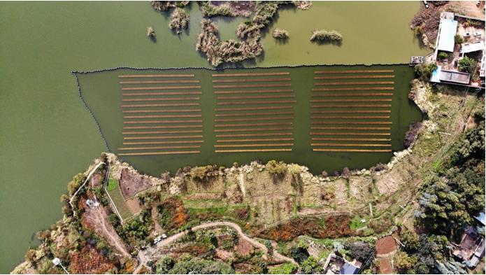 項(xiàng)目概述:洱源西湖作為擁有水域面積319.2公頃,常年蓄水位1967米,蓄水量593萬立方米的高原平壩淡水湖泊,洱源西湖不僅為洱海提供大量的水資源,還在洱海保護(hù)治理中發(fā)揮著重要作用。然而原本水質(zhì)很好的西湖,由于流域旅游業(yè)井噴式發(fā)展、右所鎮(zhèn)污水處理設(shè)備不完善導(dǎo)致部分生活污水進(jìn)入湖區(qū)、周邊大力發(fā)展經(jīng)濟(jì)作物過度施藥施肥、區(qū)域優(yōu)級補(bǔ)水下降等原因?qū)е滤|(zhì)逐漸惡化。西湖水質(zhì)經(jīng)過多年污染以及多次爆發(fā)藍(lán)藻水華,已經(jīng)破壞了其水生態(tài)系統(tǒng),自身無法進(jìn)行自組織修復(fù),雖然阻斷外源污染的工作十分重要,但是治標(biāo)不治本,效果還是不盡人意。