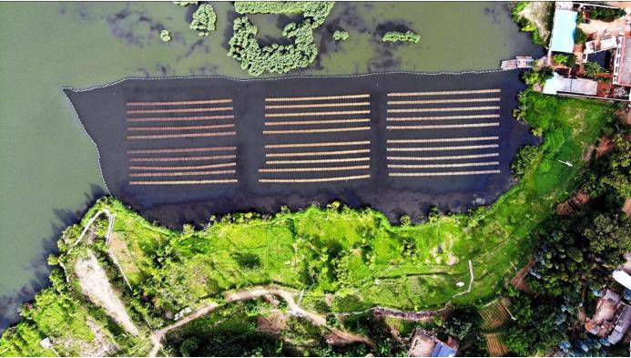 同年4月,云南省大理州洱源縣西湖新型光催化技術(shù)水質(zhì)提升示范研究項(xiàng)目開始進(jìn)入全面施工階段。首先,采用柔性圍隔分離出11500㎡的水域,減少內(nèi)外水體交換。在水下約十公分處敷設(shè)水域占比面積為31.7%的光催化網(wǎng),它是一種將多種納米級光催化材料和石墨烯強(qiáng)化材料相結(jié)合的新型光催化材料,負(fù)載于具有超高比表面積的PP纖維絲的新型水環(huán)境生態(tài)治理設(shè)備,與水體充分接觸,能高效吸收太陽光,利用光催化氧化作用無選擇降解水中有機(jī)污染物,提升水體透明度,改善水體生境,引導(dǎo)水生態(tài)自組織修復(fù),抑制藍(lán)藻水華發(fā)生。隨著水中微生物、底棲動(dòng)物、浮游藻類、沉水植物以及魚類的逐步恢復(fù),水生態(tài)系統(tǒng)區(qū)域健全,從而進(jìn)一步使水質(zhì)得到提升,最終形成水生態(tài)-水質(zhì)提升的良性循環(huán)體系。用時(shí)1個(gè)月,項(xiàng)目全面竣工并正式開始后期運(yùn)營維護(hù)工作,確保治理水體生態(tài)系統(tǒng)運(yùn)行良好,水質(zhì)持續(xù)保持并提升。