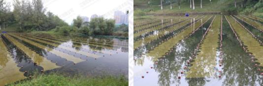 經過兩個多月的治理,變化如下:Z6A新型光催化網_水庫治理_河道治理_水生態(tài)修復_水環(huán)境治理與修復_江蘇雙良環(huán)境科技有限公司