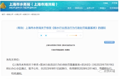 07《上海市水務(wù)局關(guān)于修改<排水行業(yè)違法行為行政處罰裁量基準>的決定》