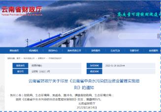 由云南省財政廳印發(fā),自2022年3月1日起施行,實施有效期至2025年12月31日。該細則所稱中央水污染防治資金,是指由中央財政下達云南省專門用于支持水污染防治和水生態(tài)環(huán)境保護方面的資金;明確資金將重點支持流域水污染防治,流域水生態(tài)保護修復(fù),集中式飲用水水源地保護,地下水生態(tài)環(huán)境保護,水污染防治監(jiān)管能力建設(shè),以及其他需要支持的事項。