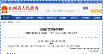 2022年1月23日,由山西省第十三屆人民代表大會第六次會議通過,自2022年3月1日起施行。該條例適用于在汾河流域開展生態(tài)保護和修復(fù),以及汾河流域各類生產(chǎn)生活、開發(fā)建設(shè)等活動;要求汾河流域經(jīng)濟社會發(fā)展和生態(tài)保護應(yīng)當(dāng)堅持生態(tài)優(yōu)先、綠色發(fā)展,統(tǒng)籌協(xié)調(diào)、科學(xué)規(guī)劃,量水而行、節(jié)水為重,因地制宜、分類施策,協(xié)同保護、系統(tǒng)治理的原則。