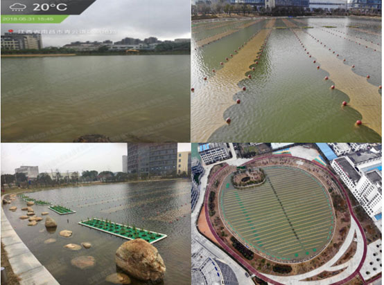 項(xiàng)目概述:高潮湖位于南昌市工業(yè)園區(qū)內(nèi),金鷹路以北,航空路以西,是一個(gè)封閉型景觀湖,呈圓形。周邊為硬質(zhì)岸坡,湖岸上四周為景觀綠化帶。湖岸以?xún)?nèi)約4m范圍為淺灘,用堆石固定。湖底由外到內(nèi)逐漸加深,水深約1.5-2m。由于前期高潮湖已徹底改造,湖中無(wú)任何水生動(dòng)植物,水中生態(tài)基本被破壞,水體失去自?xún)裟芰?,水體較渾濁。80T新型光催化網(wǎng)_水庫(kù)治理_河道治理_水生態(tài)修復(fù)_水環(huán)境治理與修復(fù)_江蘇雙良環(huán)境科技有限公司