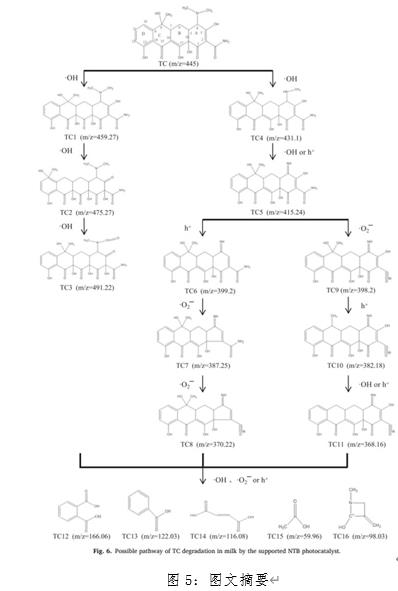 5UU新型光催化網(wǎng)_水庫治理_河道治理_水生態(tài)修復(fù)_水環(huán)境治理與修復(fù)_江蘇雙良環(huán)境科技有限公司 5UU新型光催化網(wǎng)_水庫治理_河道治理_水生態(tài)修復(fù)_水環(huán)境治理與修復(fù)_江蘇雙良環(huán)境科技有限公司 5UU新型光催化網(wǎng)_水庫治理_河道治理_水生態(tài)修復(fù)_水環(huán)境治理與修復(fù)_江蘇雙良環(huán)境科技有限公司7、中文標(biāo)題:可見光下N-TiO2-Bi2WO6異質(zhì)結(jié)膜降解牛奶中四環(huán)素的機理及途徑5UU新型光催化網(wǎng)_水庫治理_河道治理_水生態(tài)修復(fù)_水環(huán)境治理與修復(fù)_江蘇雙良環(huán)境科技有限公司引自:Yuedeng Tang , Ting Li , Wenxuan Xiao , Zitong Huang , et al. Degradation mechanism and pathway of tetracycline in milk by heterojunction N-TiO