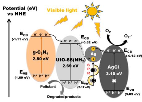 引自:Fabrication of heterostructured Ag/AgCl@g-C3N4@UIO-66(NH2)Ka2新型光催化網(wǎng)_水庫(kù)治理_河道治理_水生態(tài)修復(fù)_水環(huán)境治理與修復(fù)_江蘇雙良環(huán)境科技有限公司