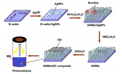 引自:Mounir Gaidi 1,2,4,∗ , Kais Daoudi 1,2 , Soumya Columbus 2,3 , Anouar Hajjaji 4 , My Ali El Khakani 5 , Brahim Bessais . Enhanced photocatalytic activities of silicon nanowires/graphene oxide nanocomposite: Effect of etching parameters.journal of environmental sciences 101 (2021) 123–134