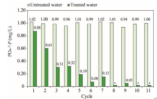 43-P/L·d。在滴濾反應(yīng)器上生長(zhǎng)起來(lái)的氧化氫細(xì)菌生物量是由含1.25 %磷的干物質(zhì)上組成,這說(shuō)明正磷酸鹽的去除原理是以氧化氫細(xì)菌生長(zhǎng)為基礎(chǔ)的。用未經(jīng)處理和處理的水進(jìn)行藍(lán)藻生長(zhǎng)實(shí)驗(yàn),結(jié)果表明集胞藻只能在未經(jīng)處理的水中生長(zhǎng)。處理后的水,正磷酸鹽平均殘余值為0.008 mg/L。在這個(gè)試驗(yàn)研究證明,氧化氫細(xì)菌能夠?qū)⑺械恼姿猁}去除到阻止藍(lán)藻生長(zhǎng)的濃度。