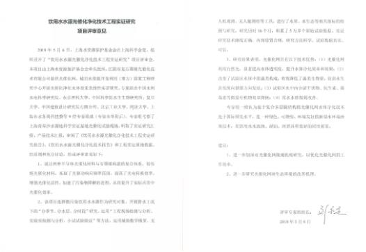 專家組通過實(shí)地踏勘,聽取匯報(bào),審閱資料及現(xiàn)場(chǎng)質(zhì)詢討論后,一致認(rèn)為:該技術(shù)處于國(guó)際領(lǐng)先水平,是一種綠色、可持續(xù)、環(huán)境友好的新型水環(huán)境治理技術(shù),在飲用水水源地、湖泊、河道具有良好的應(yīng)用前景。N3K新型光催化網(wǎng)_水庫(kù)治理_河道治理_水生態(tài)修復(fù)_水環(huán)境治理與修復(fù)_江蘇雙良環(huán)境科技有限公司
