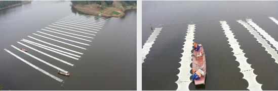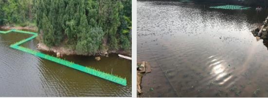 該項(xiàng)目共計(jì)布設(shè)新型光催化網(wǎng)3140張,安裝浮島模塊1835㎡,種植鳶尾、黃菖蒲4萬余株,苦草、狐尾藻8萬余株。8Cl新型光催化網(wǎng)_水庫治理_河道治理_水生態(tài)修復(fù)_水環(huán)境治理與修復(fù)_江蘇雙良環(huán)境科技有限公司