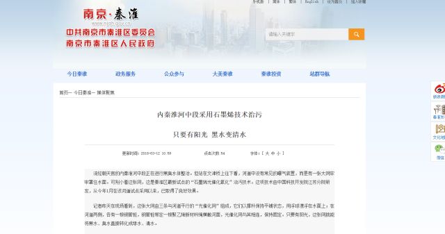 南京日?qǐng)?bào)一篇名為“內(nèi)秦淮河中段采用石墨烯技術(shù)治污——只要有陽(yáng)光 黑水變清水”的新聞報(bào)道引起了讀者們的興趣。2gk新型光催化網(wǎng)_水庫(kù)治理_河道治理_水生態(tài)修復(fù)_水環(huán)境治理與修復(fù)_江蘇雙良環(huán)境科技有限公司